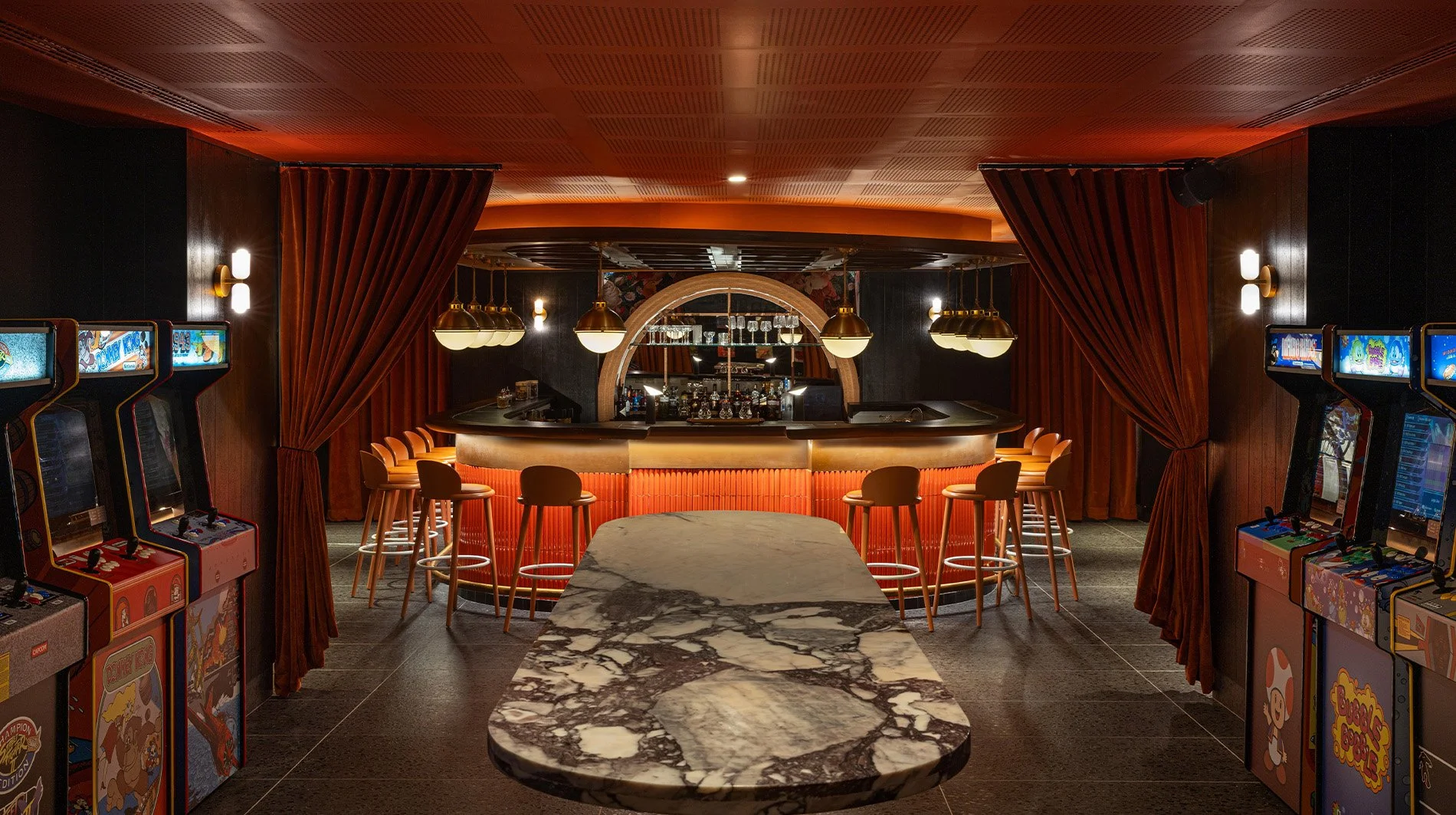 …there’s a consistency in the design language. Curves soften the architecture. Timber grounds the spaces. Light creates warm pockets of intimacy.