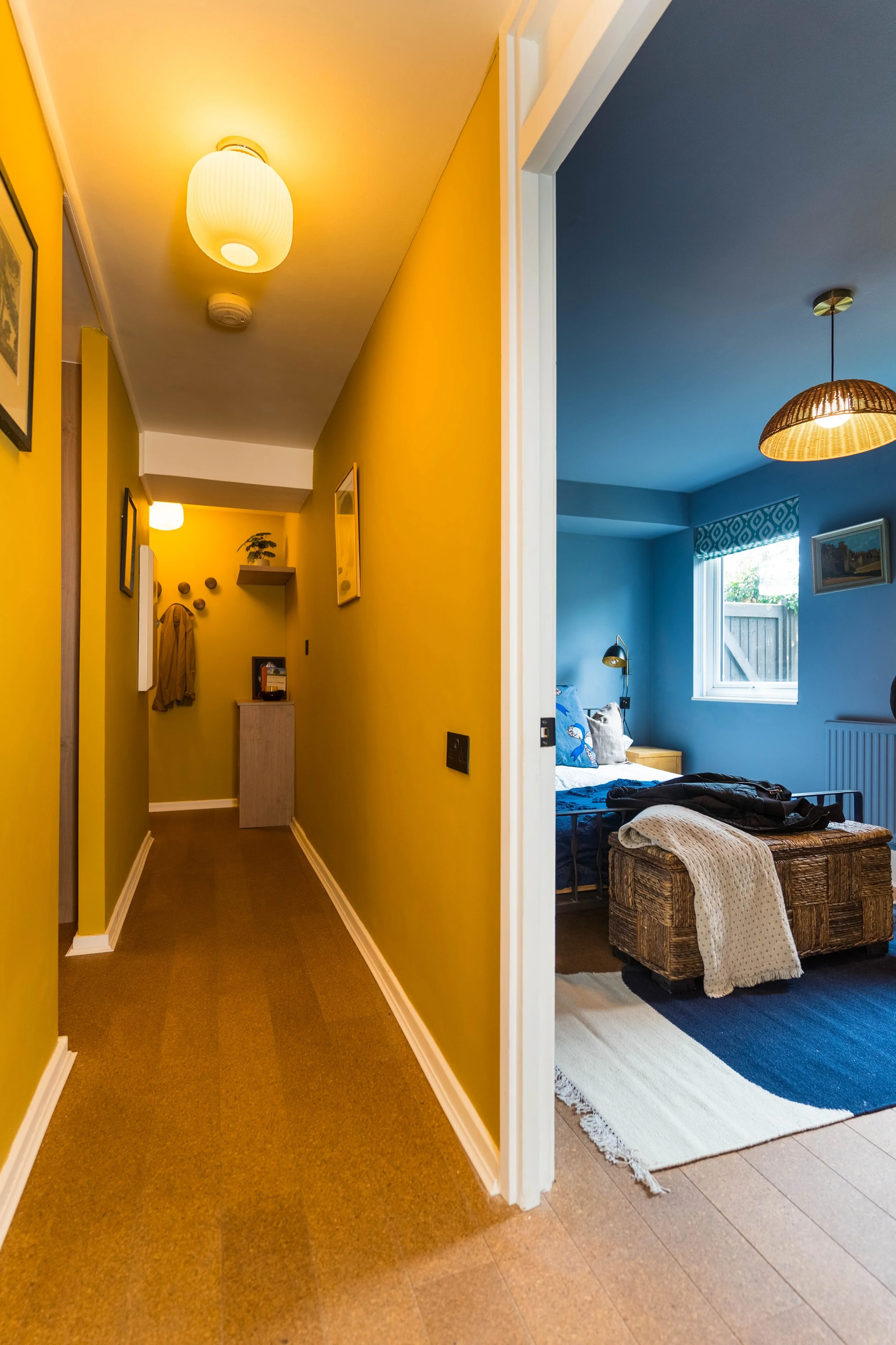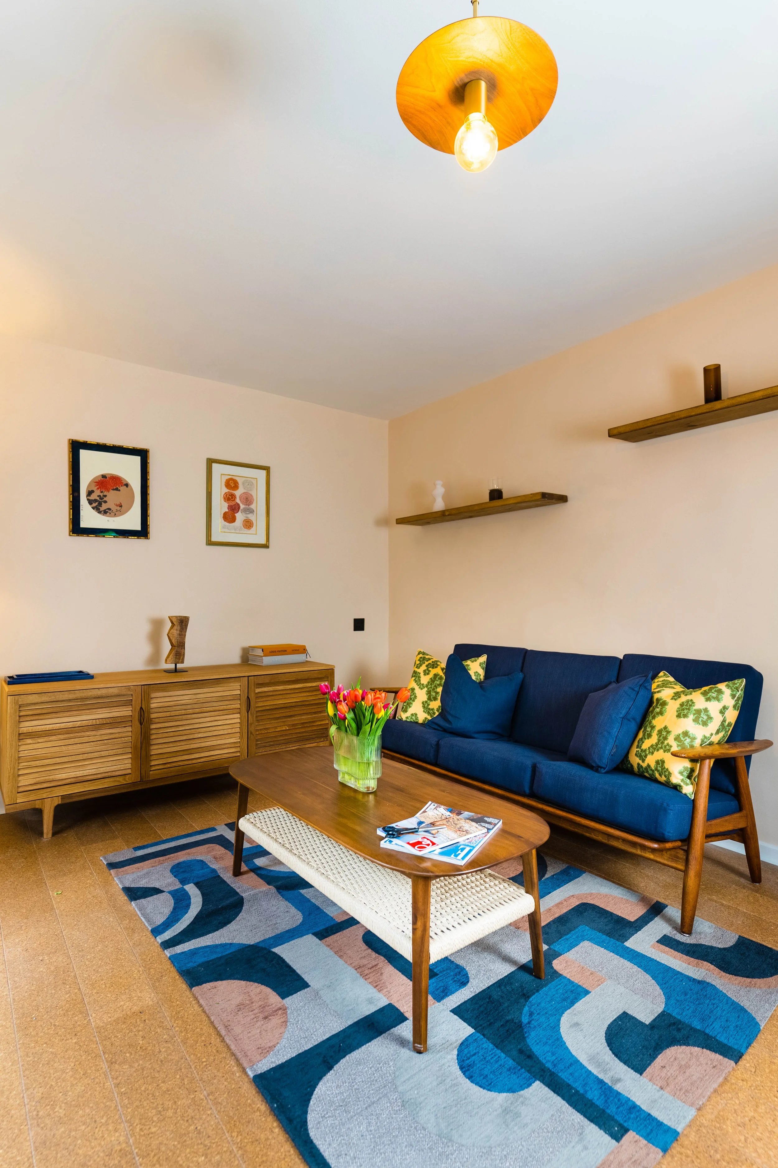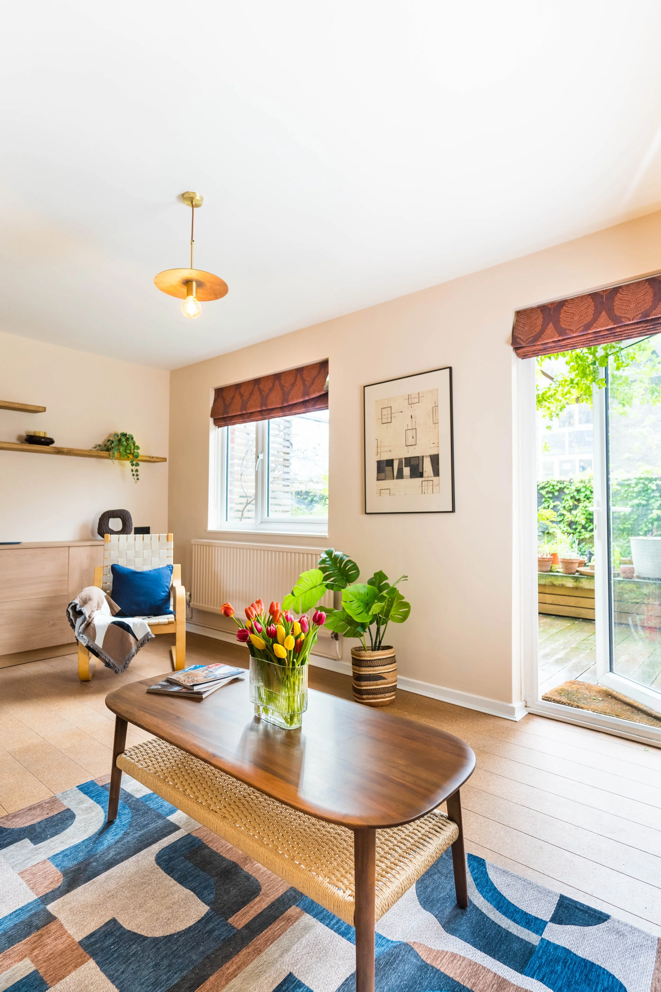 The living room’s thoughtful layout overlooking a serene garden creates a peaceful retreat, and the vibrant, curated colour palette reflects the client’s fun, outgoing character. The result is a harmonious balance of style, comfort, and practicality — a home designed to be treasured for years to come.